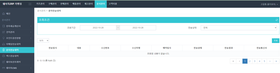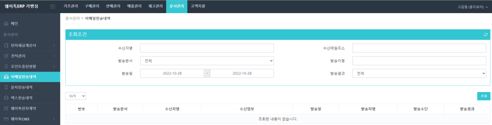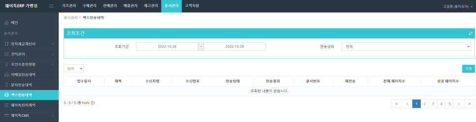 이메일/문자/팩스 전송내역 조회