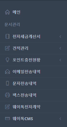 [상단메뉴]문서관리 항목에서는 전자세금계산서 및 견적서 등 모든 문서를 관리할 수 있습니다.