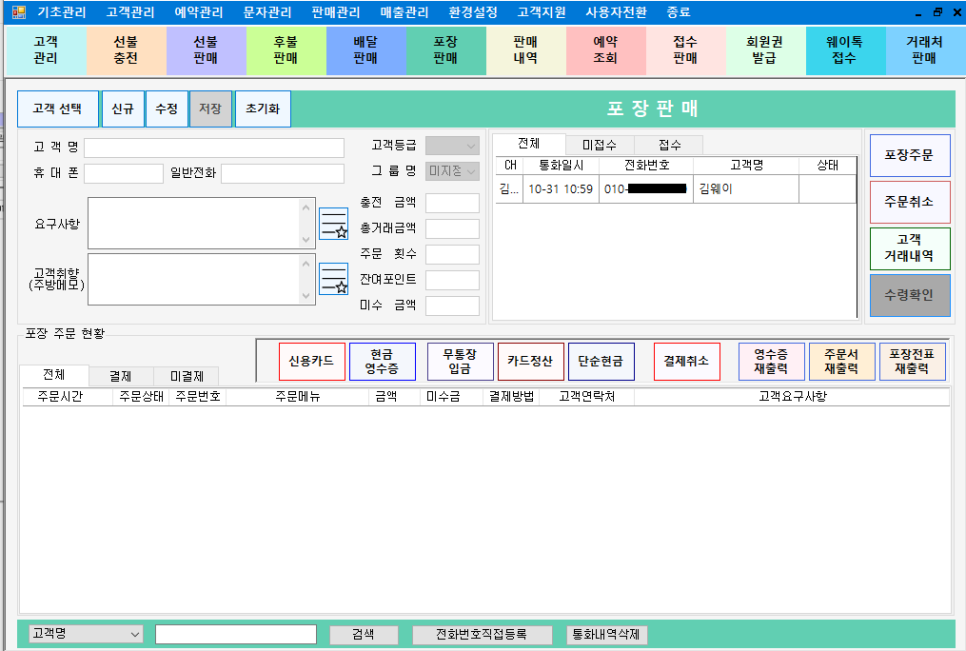 고객이 전화하거나 방문 시 예약한 고객을 검색하여 신속한 접수 및 판매가 가능합니다.