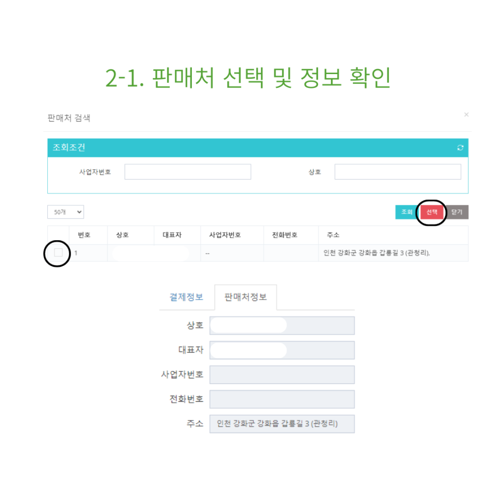 2-1. 판매처를 선택하고 정보를 확인하세요