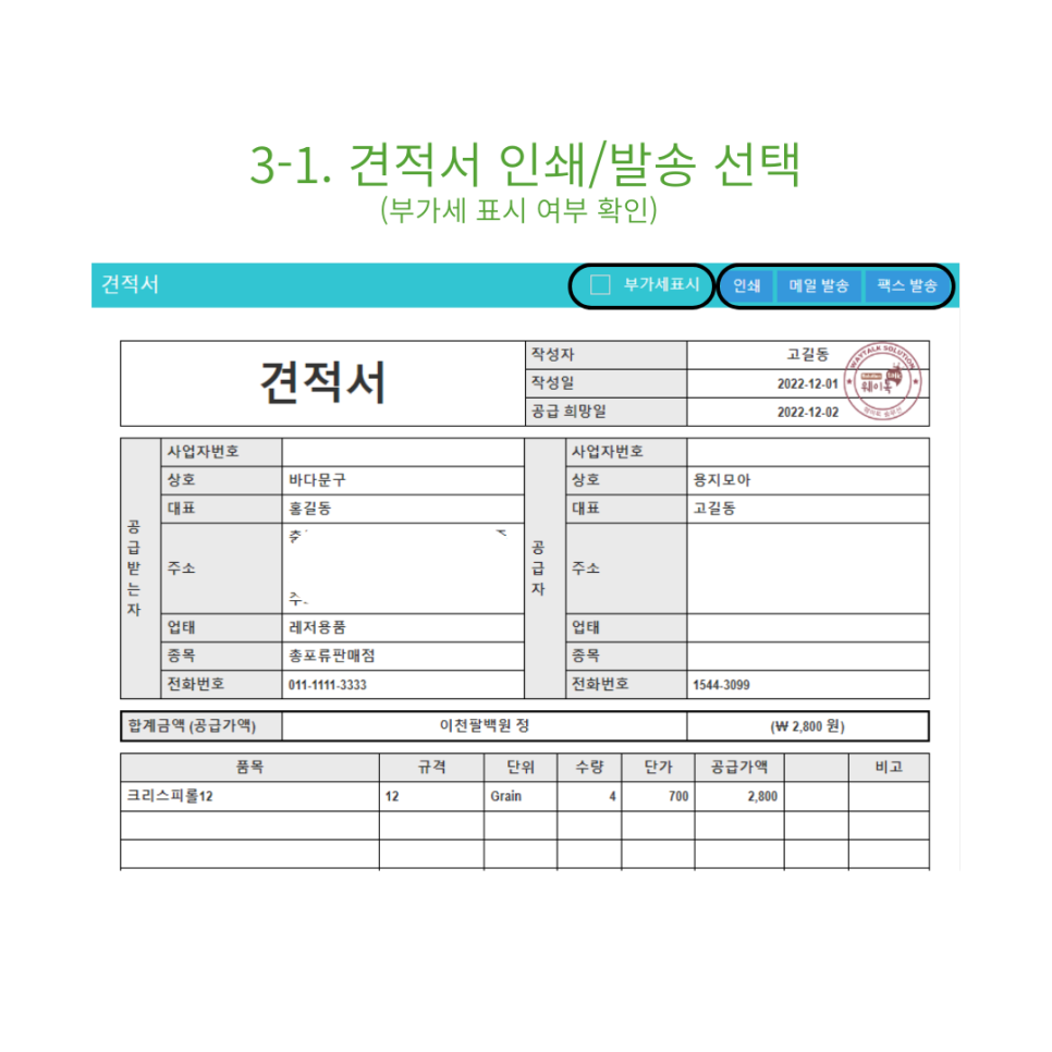 3-1. 견적서를 인쇄/발송하세요