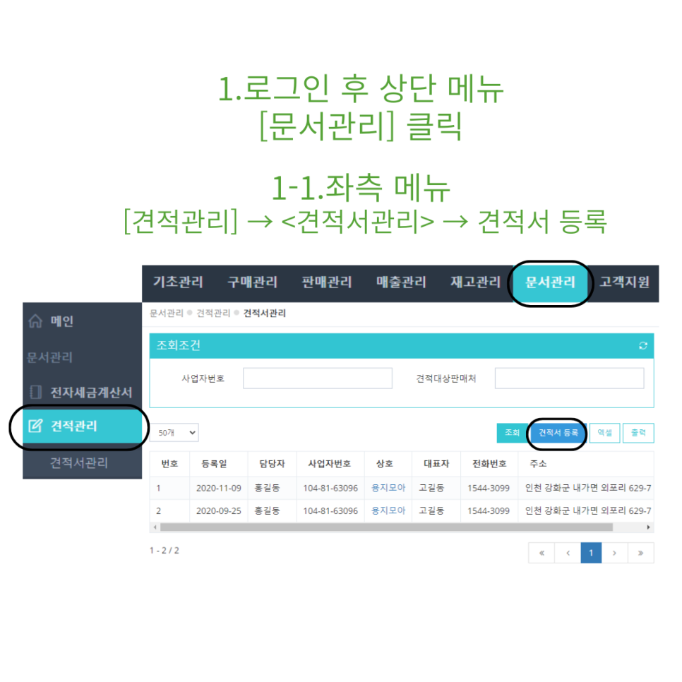 1-1. 견적서등록을 클릭하세요