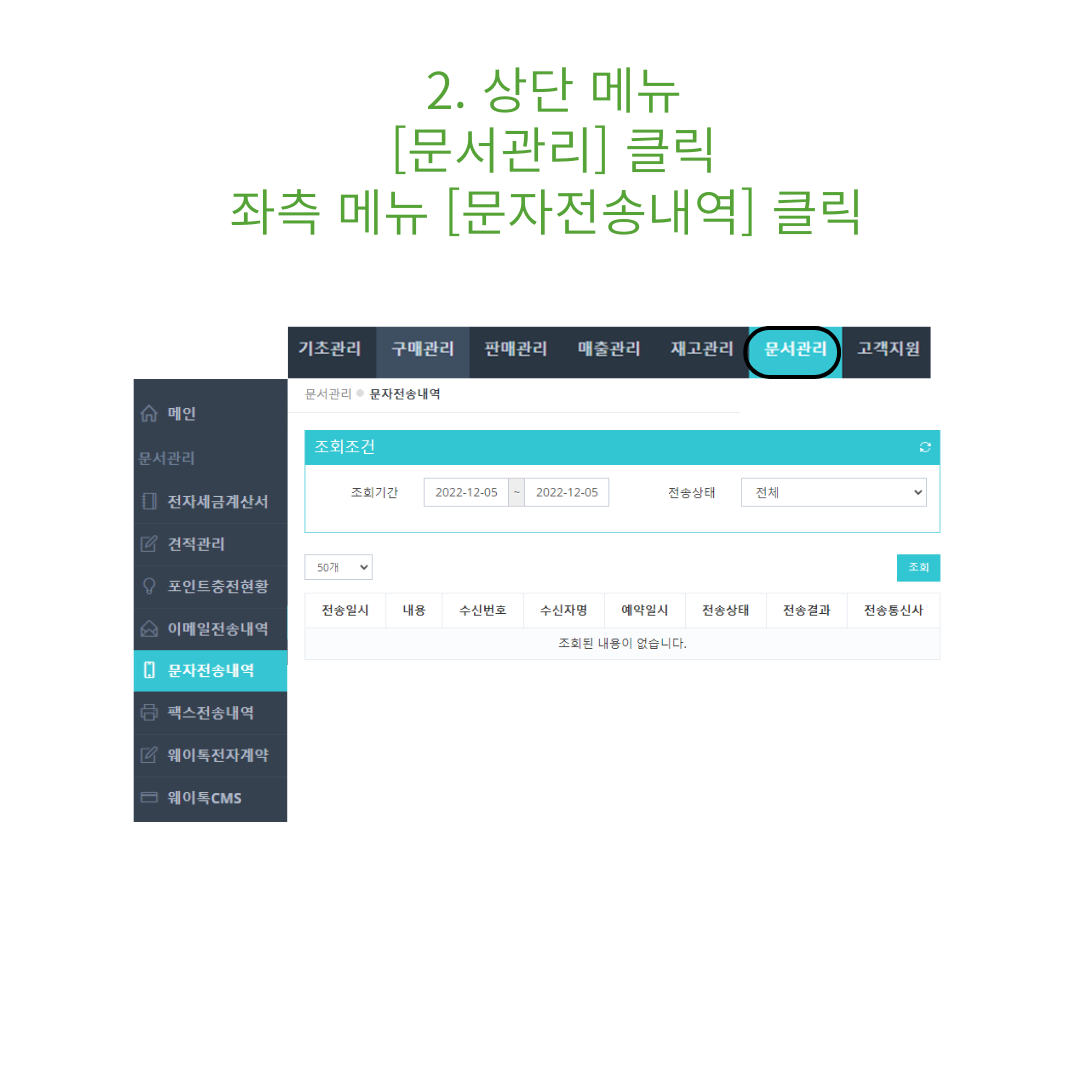 2. [문서관리] → <문자 전송내역>으로 이동하세요.