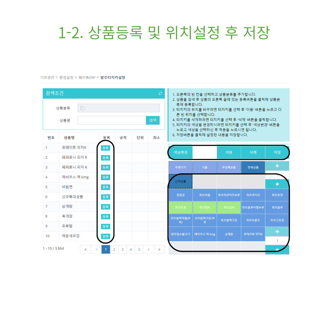 1-2. 터치키 위치를 설정 후 저장하세요.