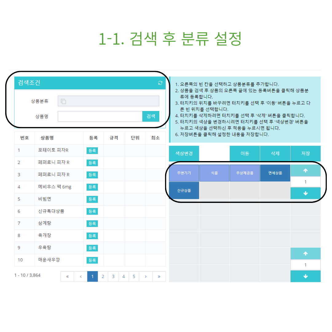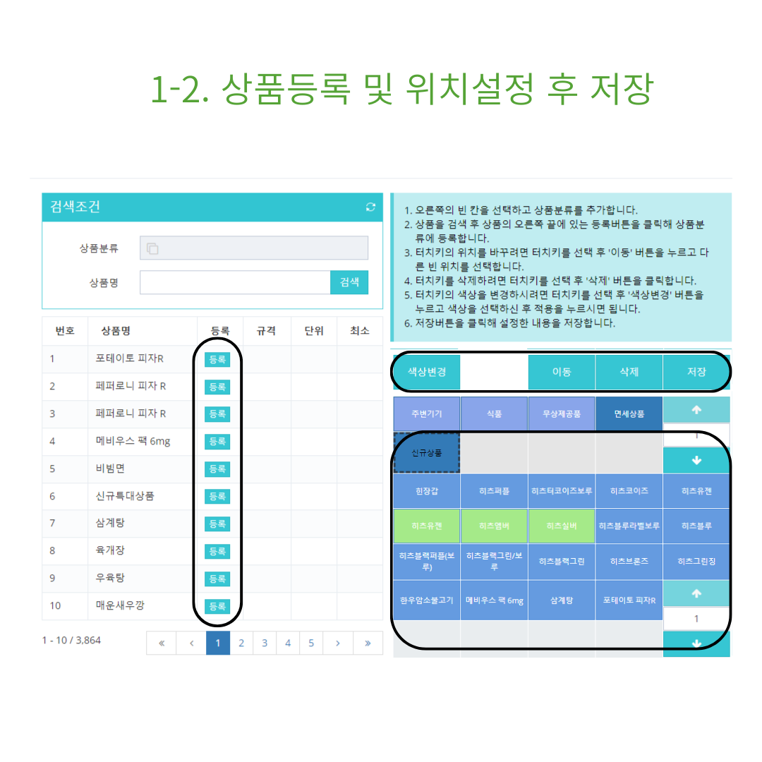 1-2. 터치키 위치를 설정 후 저장하세요.