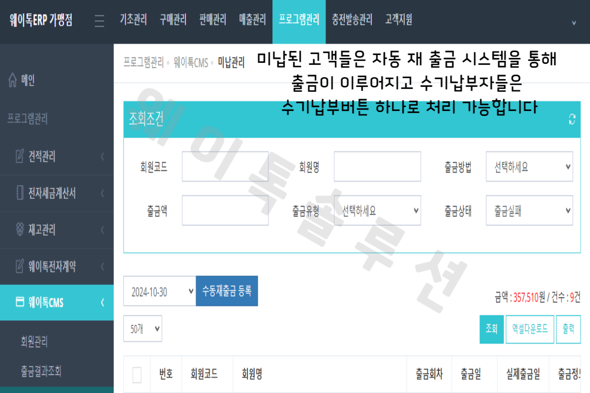 미납처리도 재동 재출금 시스템으로 미납률이 현저하게 줄어들며,