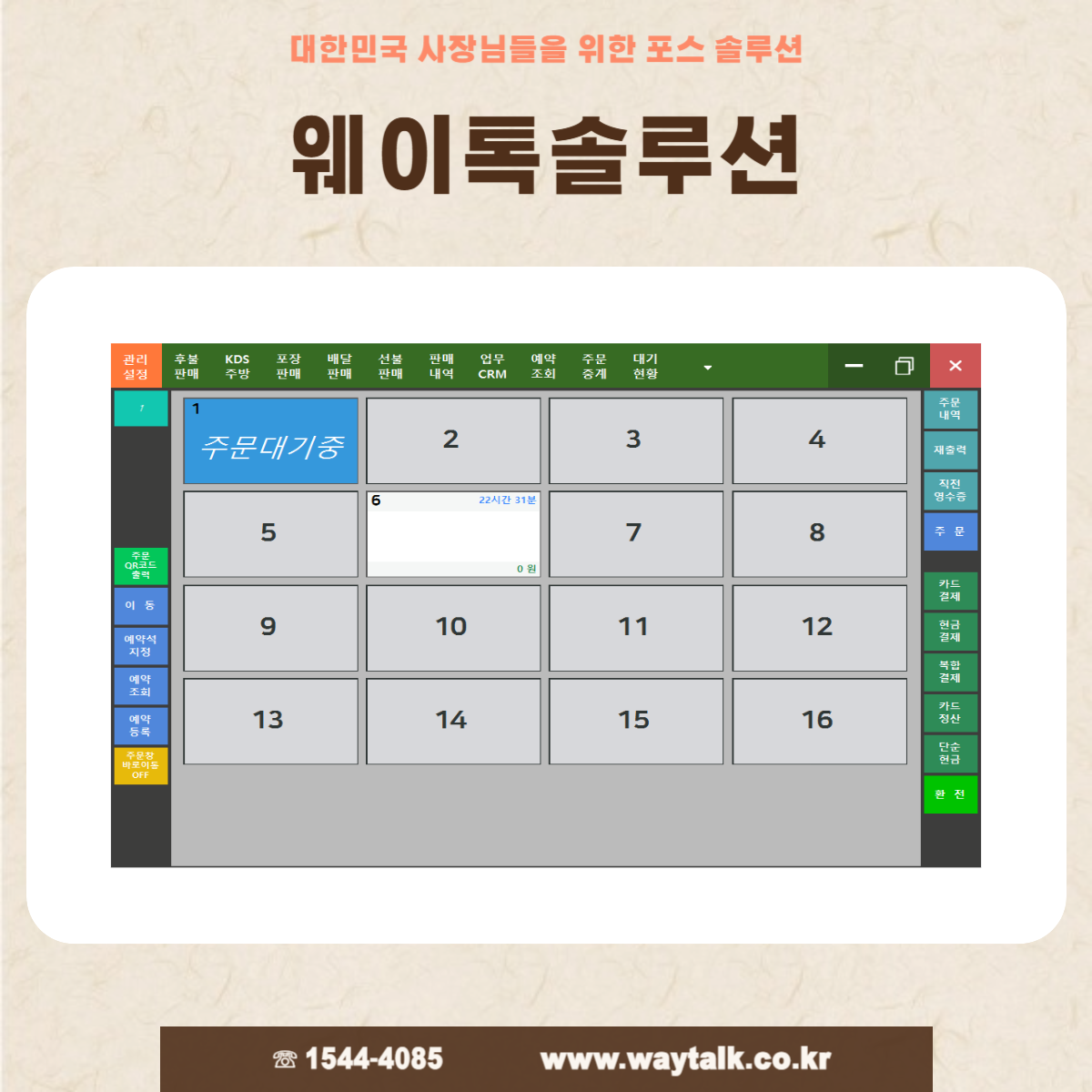 큐알메뉴주문과 매장판매 포스 프로그램 및 주방주문 모두 연동되어 있어서